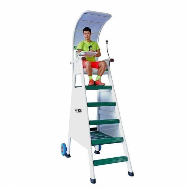 This ITF Tennis Umpire Chair has been used in a number of high-level tournaments and meets all ITF regulations. Used at the Asian Games, China Open, WTA Women's Open, and the LTA National Tennis Centre, this premium umpire chair is suitable for use at the highest level of professional tennis. Support Size: 6.5ft L x 3.2ft W x 10ft H | 2m length x 1m width x 3m height. Table Size: 1.6ft L x 1ft W | 0.5m length x 0.3m width. Canopy Width: 2.3ft | 0.7m.