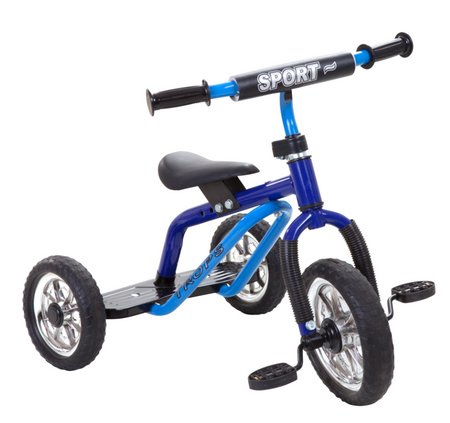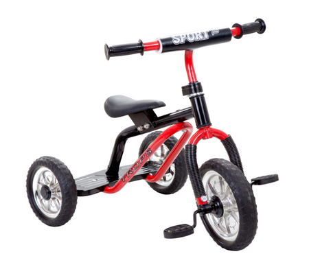 The standard baby tricycle is excellent for learning toddlers from 18 to 40 months. Perfect for home or daycare use. The bench is comfortable and stable for the children. The pedals on the front wheel allow the child to move forward. The handlebar is protected by foam for the safety of children.
