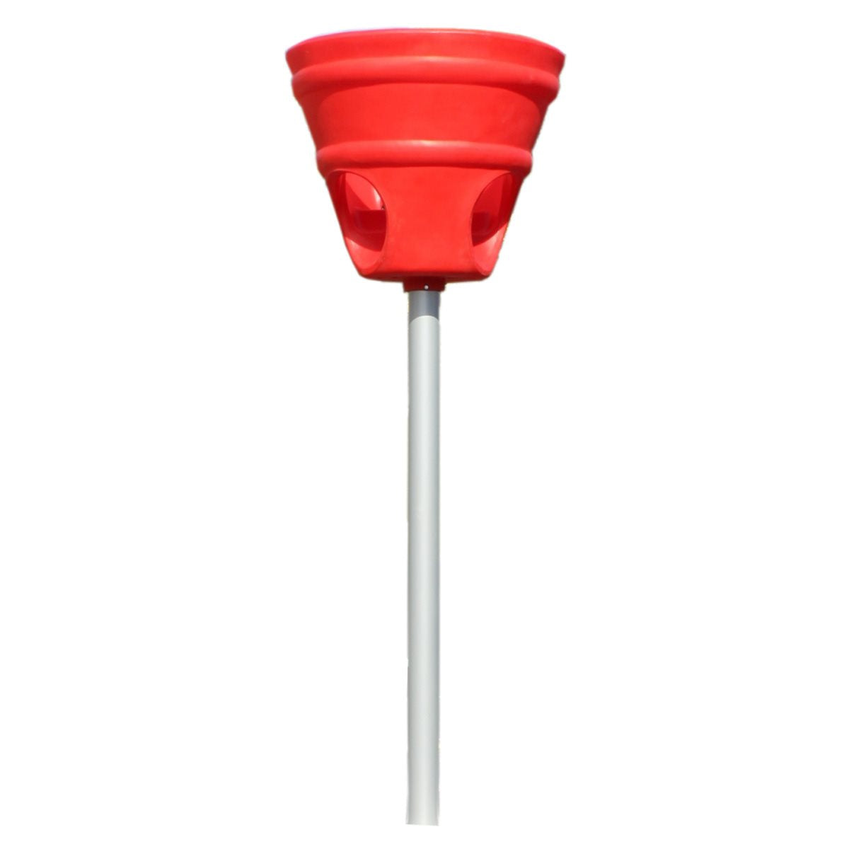 Triple kids basketball goal perfect for the playground. The 3 exits allow users to throw a ball through the top and let them guess which of the 3 holes the ball will exit through. This game is ideal for young children with its wider opening that can be used with different types of balls. Dimensions: 13 cm (5”) external diameter, 3 mm (1/8”) thick, max. 3.05m (10') high. Aluminum, steel plate, 13 gauge