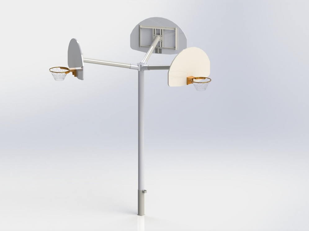 Turn any outdoor space into a true basketball court with the professional-grade triple basketball hoop! Designed for high-use environments such as schools, parks, or community centers, this robust system allows three teams to play simultaneously—ideal for maximizing fun and participation. Features a 3/4” polyethylene fan backboard with front-mount goal.