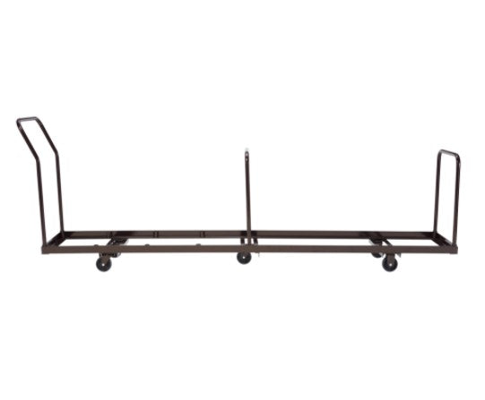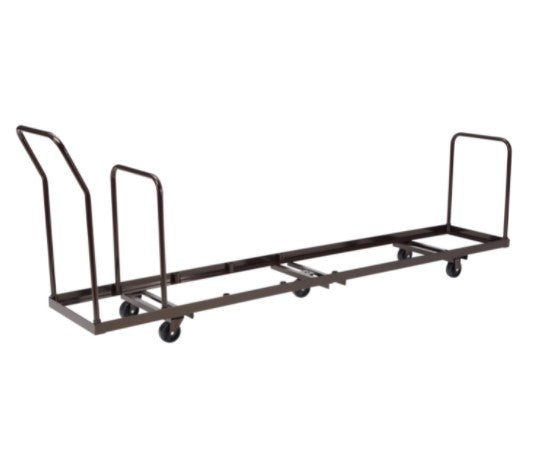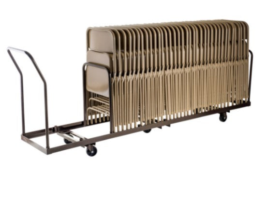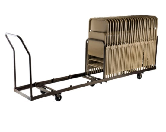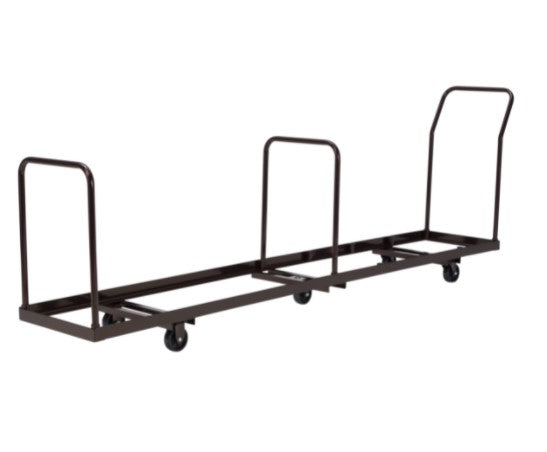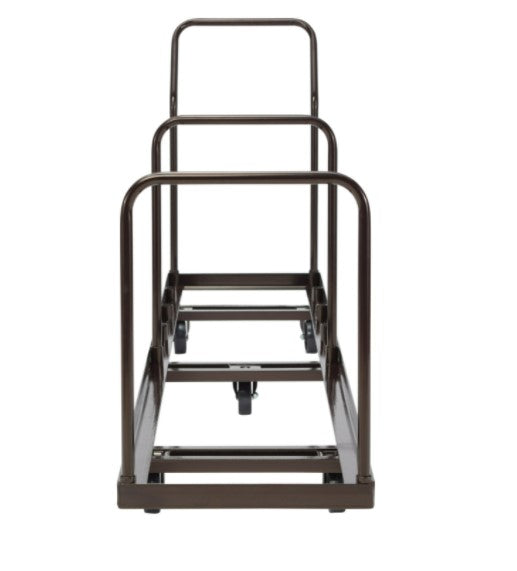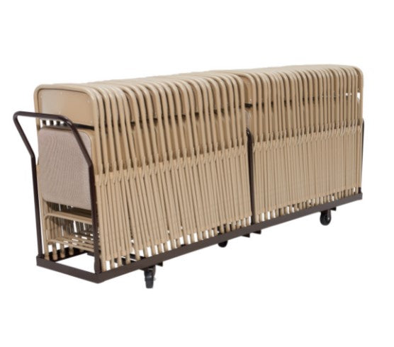 The sporting and institutional chair trolley is of commercial and institutional design. It can transport up to 35 chairs quickly and easily with the casters. Stable structure with a tubular steel frame all covered with brown powder-coat paint.