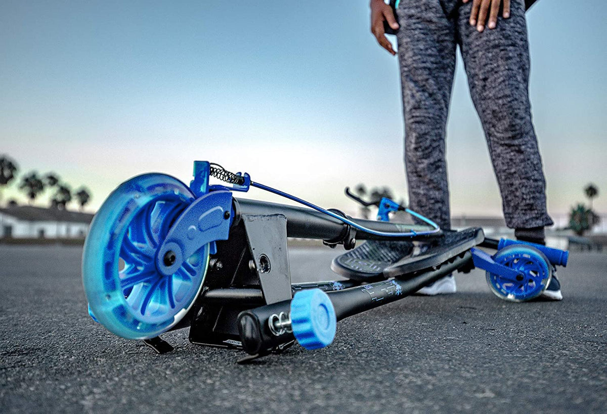 Trottinette Yvolution Y-Fliker A1 Air Refresh est un bon modèle de trottinette pour les jeunes de 5 ans et plus. Son design en Y apporte plus de stabilité que les trottinettes classiques, c'est donc un modèle parfait pour initier les jeunes a la trottinette et pratiquer leurs équilibre graduellement. La trottinette peut se plier pour un rangement facile et peu encombrant.