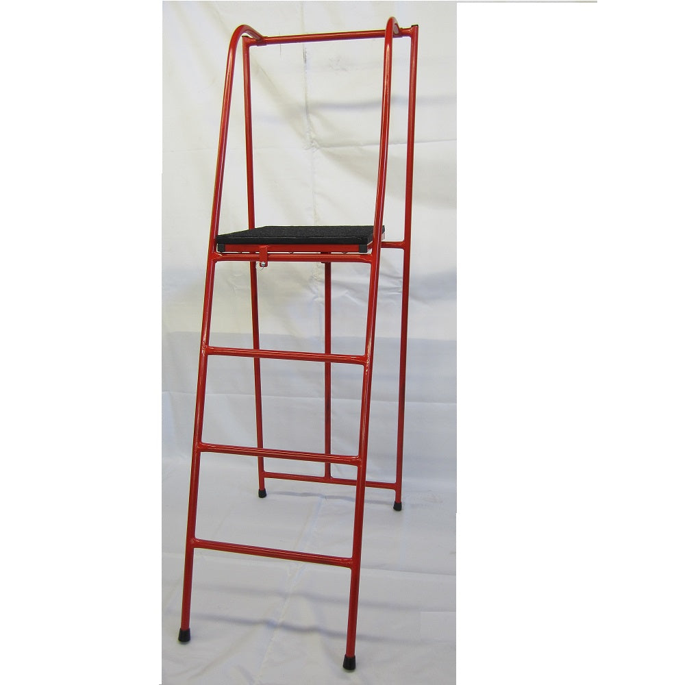 Commercial and institutional level volleyball referee chair. The volleyball chair is made of durable steel, sandblasted in red color. Anti-slip platform. Feet with rubber tips that do not damage floors.