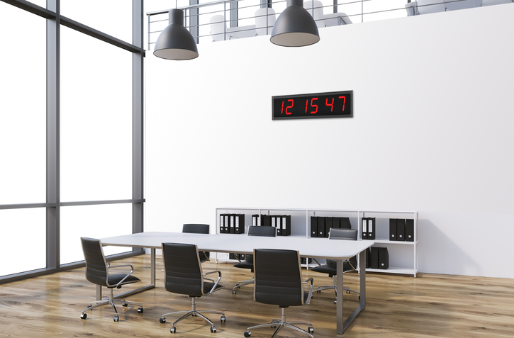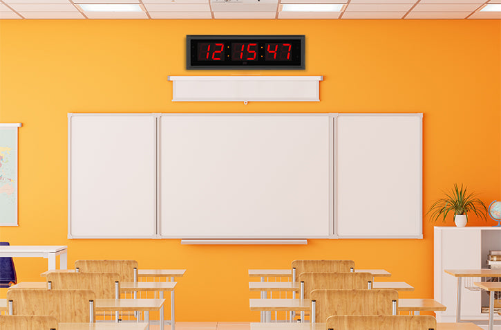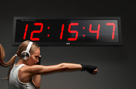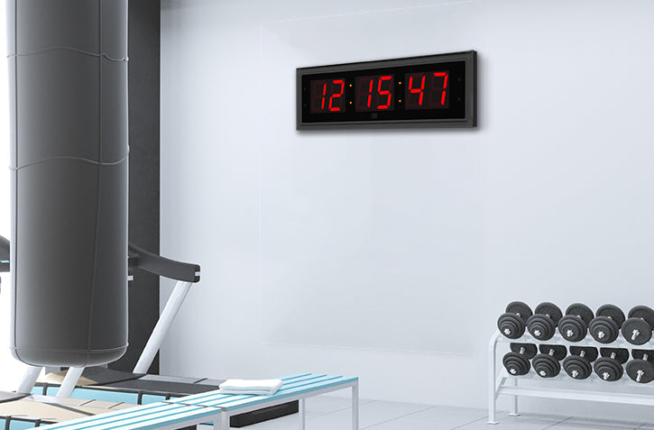 The Wall Clock Stopwatch displays hours, minutes, and seconds. Countdown, interval timer, remote control up to 45 feet. Precision clock. Stopwatch – Displays minutes, seconds, and hundredths. Automatic repeat (loop function).