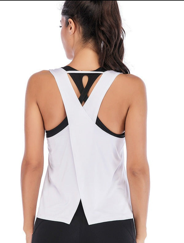 Women's lightweight sports crossover tank top made of spandex and polyester is ideal for yoga training, fitness, running, etc. The tank top breathes really well and dries quickly. It allows you to do all the movements freely without fear. Wear it every day!